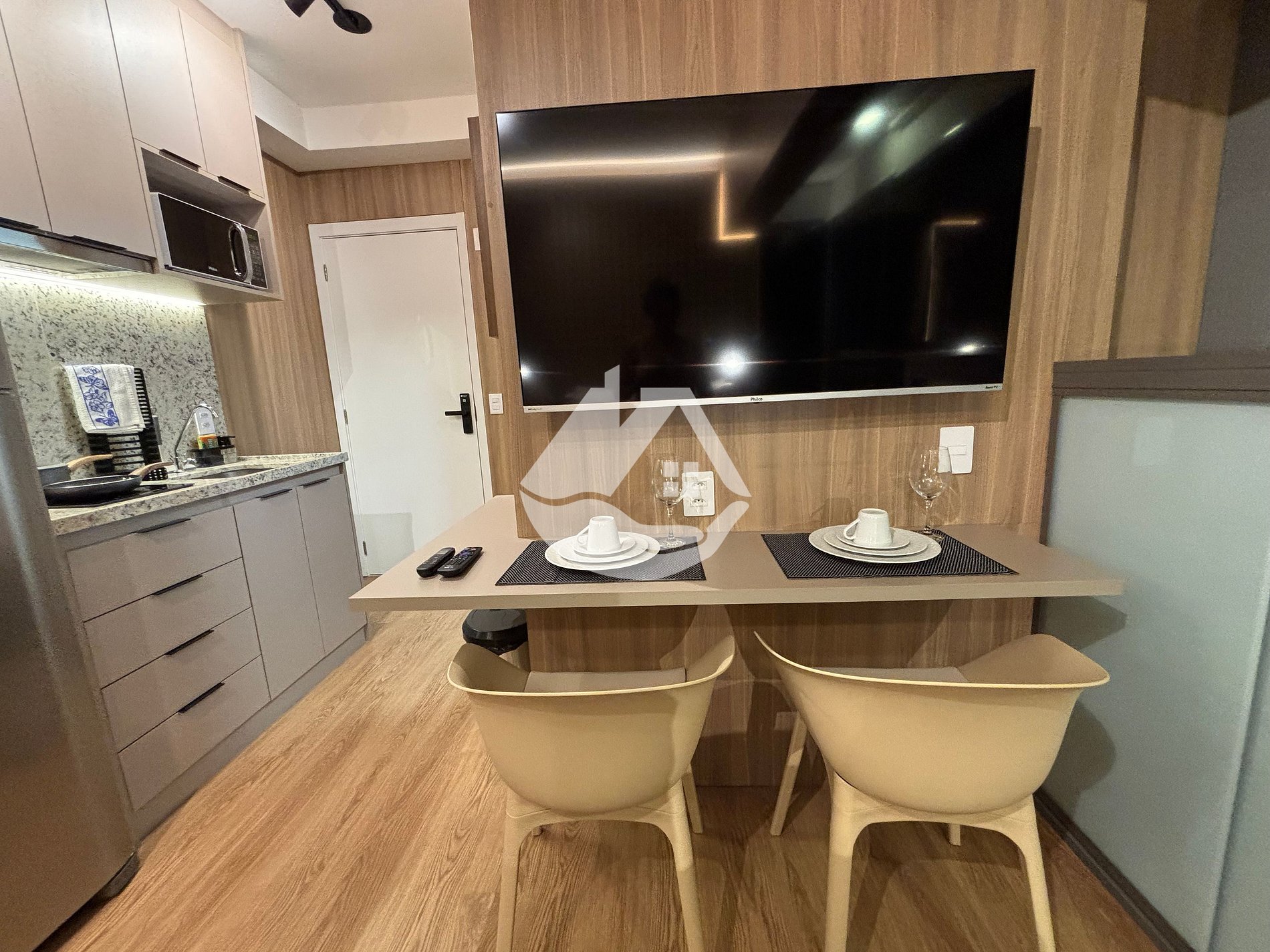 O studio é novo e conta com tudo o que você precisa para uma estádia confortável. Temos ar-condicionado, wifi, cama tamanho casal, airfryer, ferro de passar roupa, secador de cabelo, cafeteira e café, varanda com assentos confortáveis para tomar um vinho no fim de tarde e mesa com cadeiras que pode ser utilizada tanto para refeições quanto para trabalho!