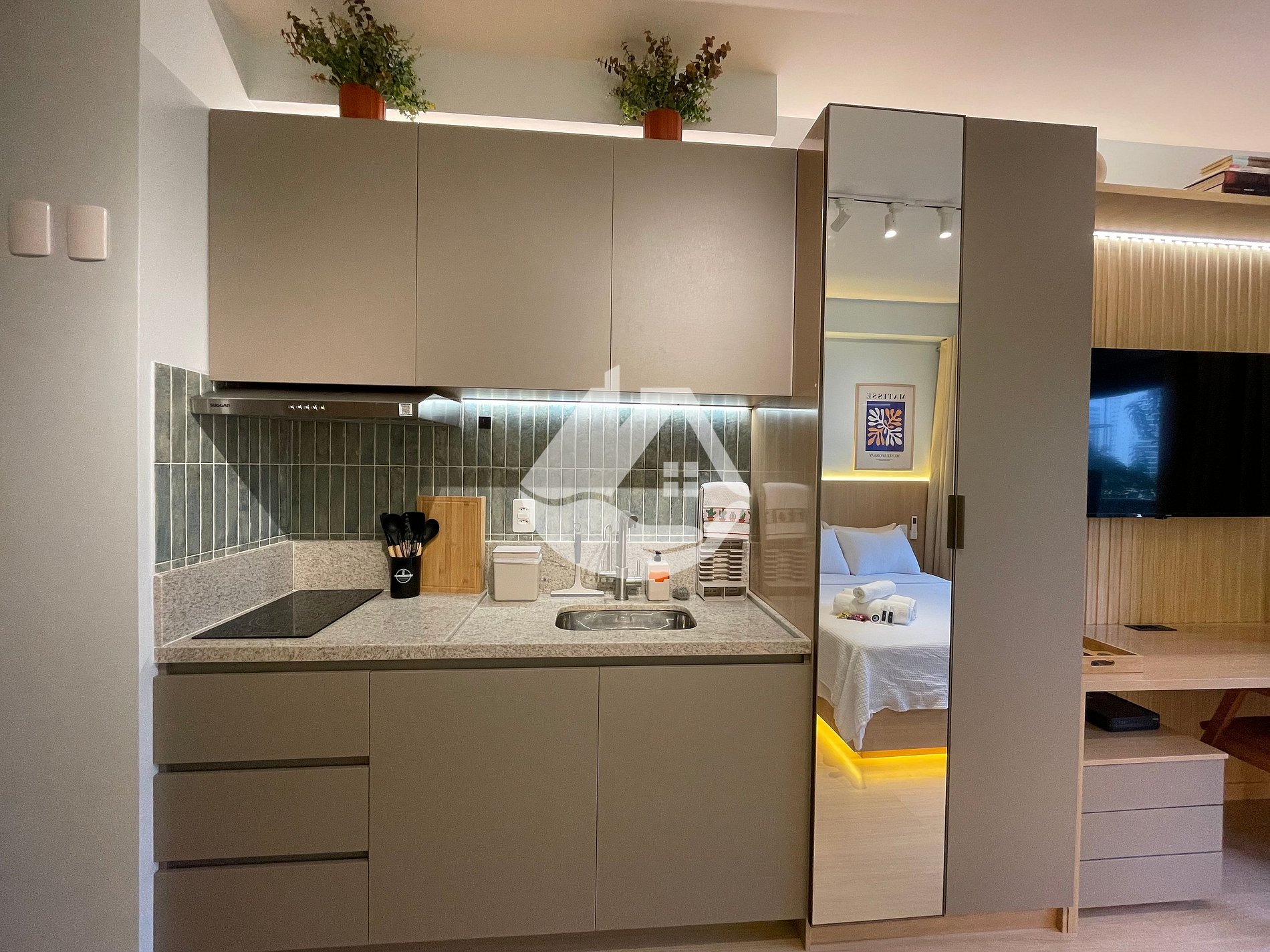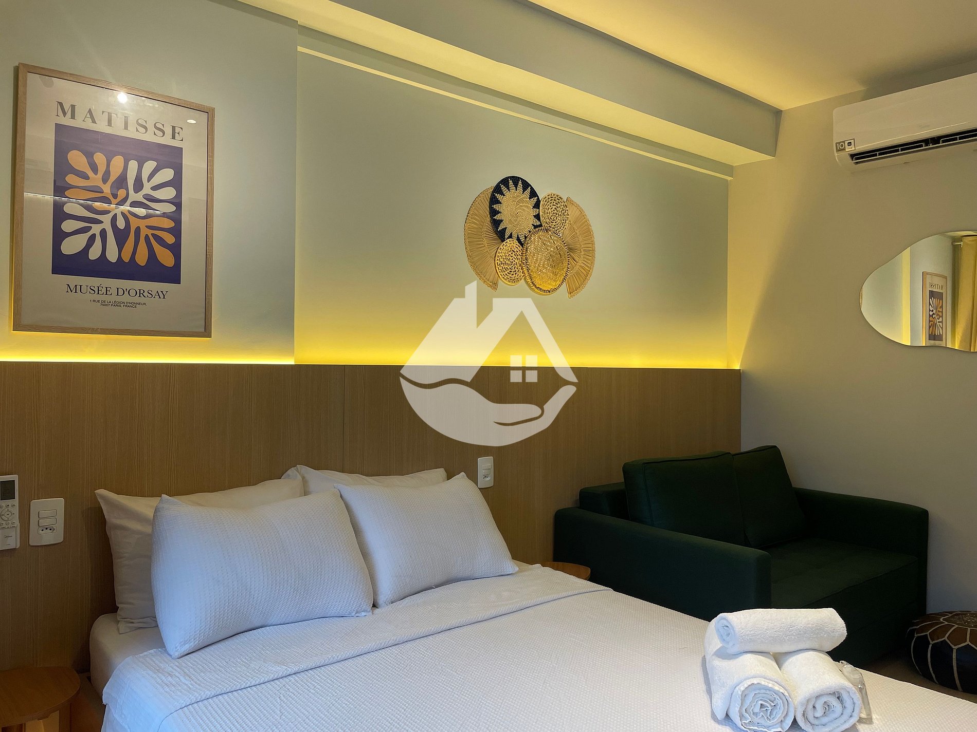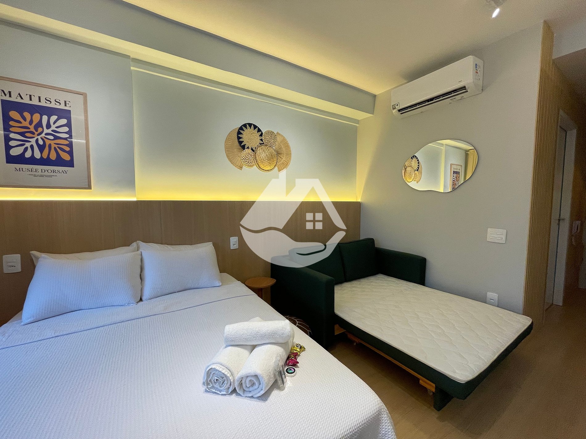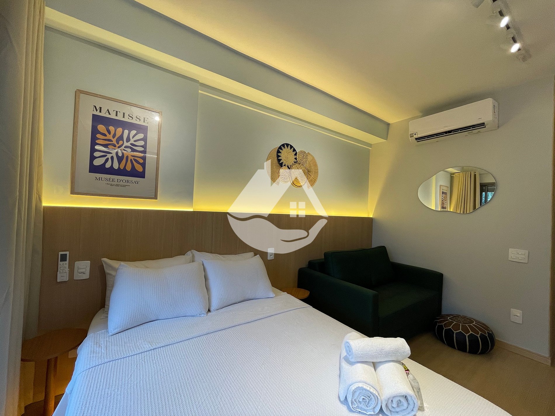 O studio é novo e conta com tudo o que você precisa para uma estádia confortável. Temos ar-condicionado, wifi, cama tamanho casal, chuveiro com aquecimento a gás, airfryer, ferro de passar roupa, secador de cabelo, cafeteira e café!