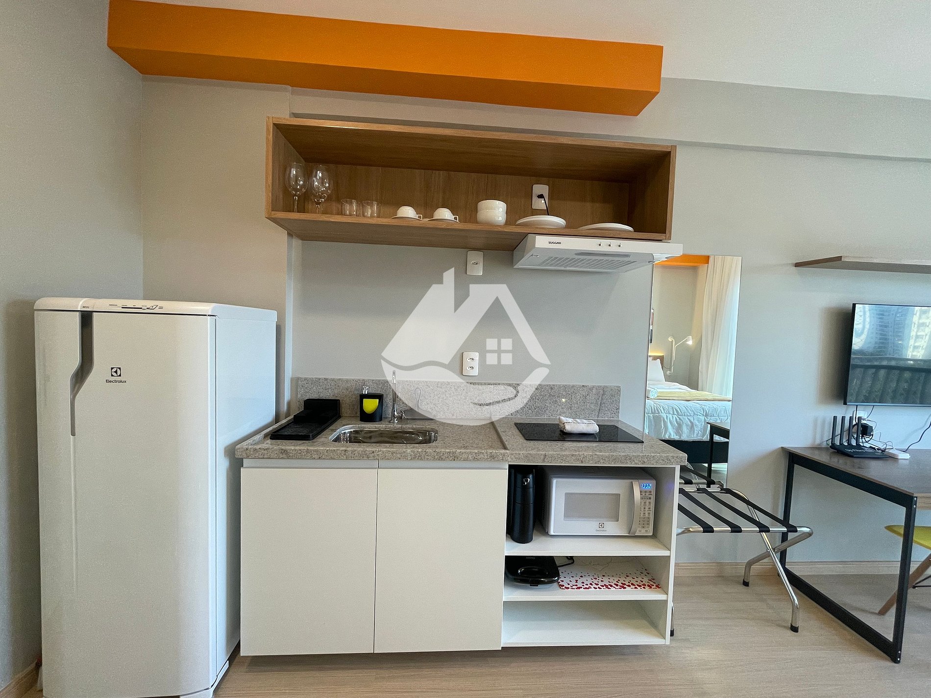 O studio é novo e conta com tudo o que você precisa para uma estádia confortável. Temos ar-condicionado, wifi, cama box casal, chuveiro com aquecimento a gás, ferro de passar roupa, secador de cabelo, cafeteira e café!