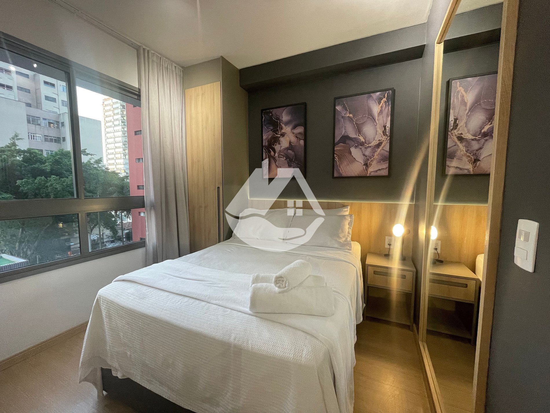 Studio completamente mobiliado e equipado para curtas e longas estadias, temos ar-condicionado, wi-fi, armarios, itens domesticos, eletrodomesticos, roupa de cama e varias comodidades no predio.