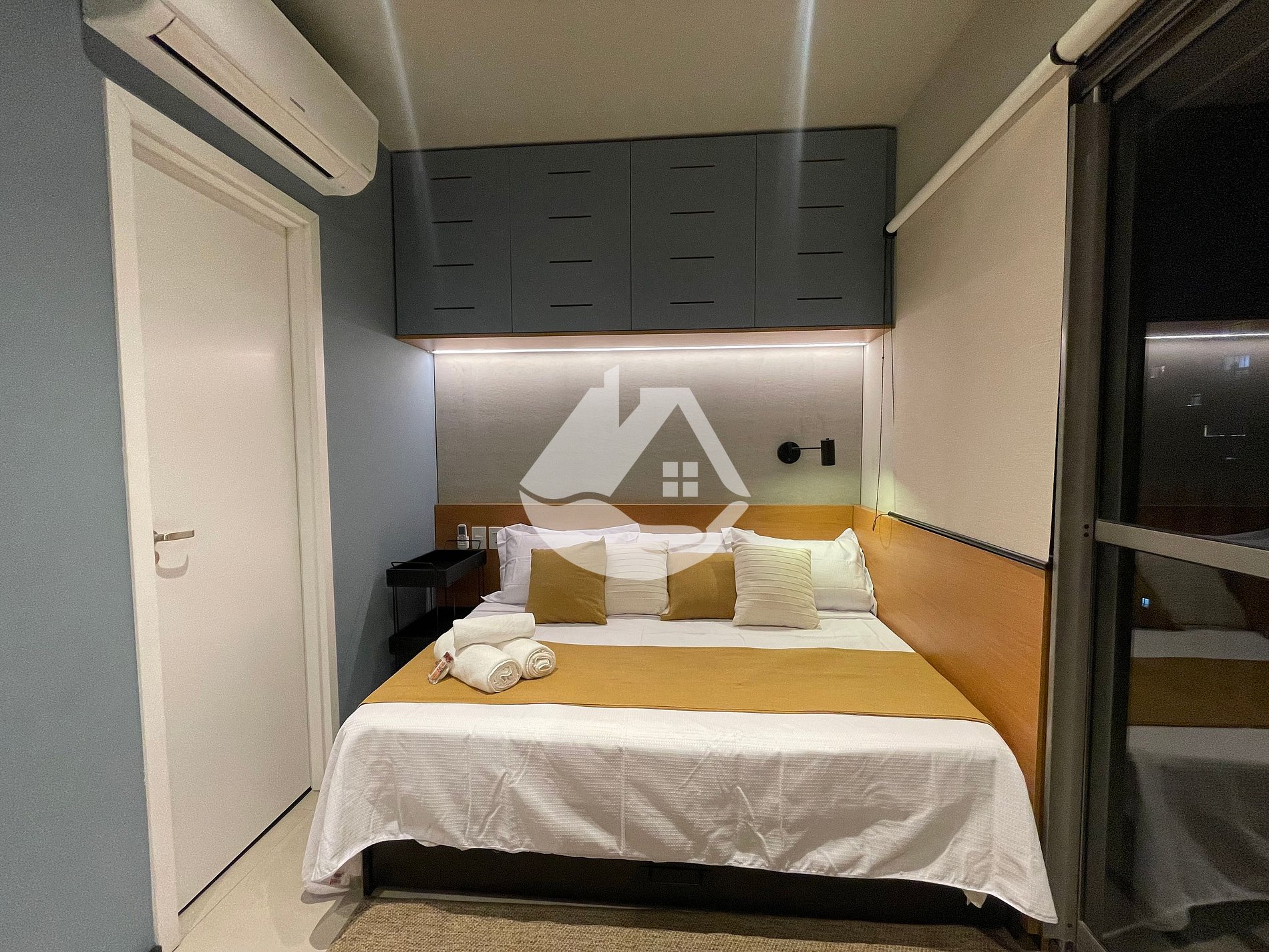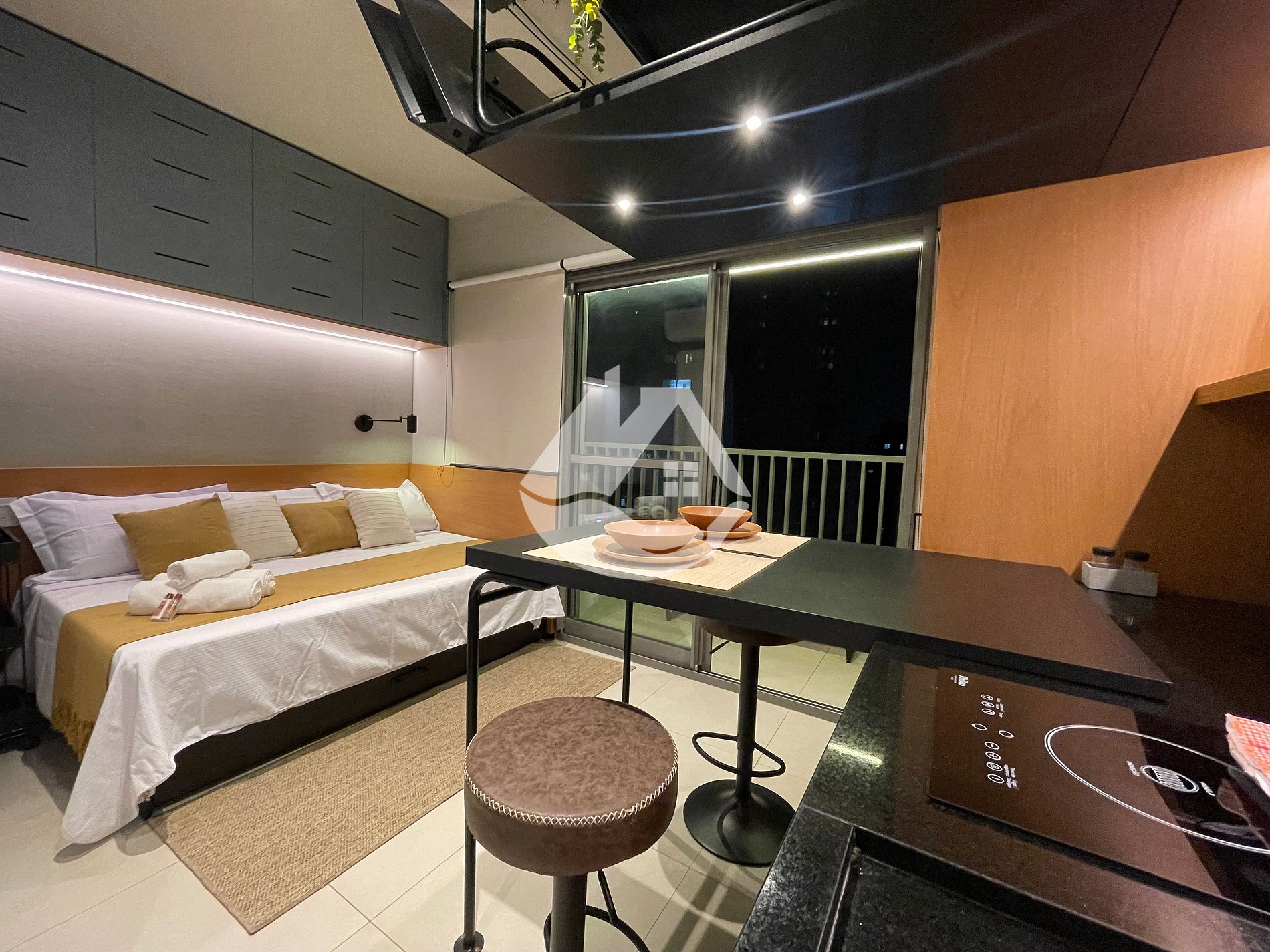 Studio completamente mobiliado e equipado para curtas e longas estadias, temos ar-condicionado, wi-fi, armários, itens domésticos, eletrodomésticos, roupa de cama e varias comodidades no prédio.